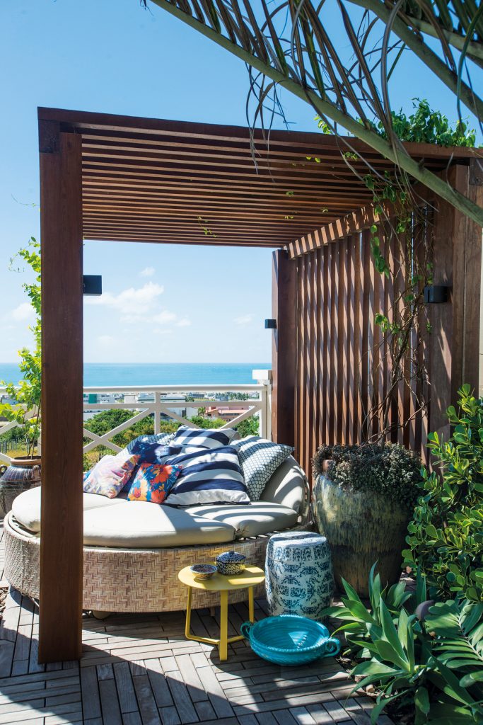 As arquitetas Naiana Lima e Priscilla Ximenes dividem o comando do escritório NLPX desde de 2010, elaborando projetos eficientes e de estética diferenciada, sempre com um olhar atento ao programa de necessidades dos clientes. Características que despertaram a atenção e a confiança dos proprietários desta casa de condomínio, localizado nas Dunas – e com uma vista privilegiada para a Praia do Futuro. Eles precisavam redefinir e modernizar os espaços, uma vez que o imóvel foi adquirido com a decoração dos proprietários anteriores. Somada a isso, a chegada de um bebê na família tornou a reforma de alguns espaços ainda mais necessária para adequá-los ao estilo de vida dos novos moradores, amantes das artes, da moda e do design. “Mantivemos elementos já existentes e incorporamos novas aquisições, sempre com o cuidado de preservar a harmonia, o que garantiu que tudo ficasse com cara de novo”, explicam. No living, por exemplo, a dupla optou pela troca das cortinas e do tapete por cores e prints atuais, além do uso de peças-chave de design – como a poltrona Amoebe Highback chair e a luminária Guns Lounge de Philippe Starck – para destacar alguns recantos e imprimir ares cosmopolita. A sala de jantar também ganhou uma atmosfera moderna e jovial – mas sem perder a classe – com a nova luminária de murano e a tela da artista colombiana Adriana Duque. A pedido da proprietária, o quarto ao lado do casal foi transformado em um generoso closet, pensado nos mínimos detalhes para abrigar o acervo e servir de cenário para os looks da proprietária, uma vez que, para ela, a moda não é só paixão mas também trabalho. O espaço ganhou uma disposição similar à de lojas, com cores sóbrias e sofisticadas para destacar o colorido das peças, além de uma penteadeira com iluminação especial para o make do dia a dia. O papel de parede geométrico e as peças assinadas arrematam o décor, em sintonia com o estilo arrojado da fashion blogger. Outro ponto alto do projeto foi a criação de um espaço zen para atividades ao ar livre, como yoga e alongamentos, com um pergolado de madeira destacando um grande Budha, adquirido em viagem. “Também criamos outro pergolado para dar origem a um novo estar na frente da casa, valorizando ainda mais a bela vista para o mar”, finalizam as profissionais.